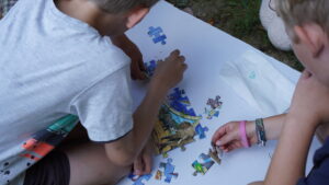 Am Nachmittag gab es eine Natur-Rally, bei dem die Kinder in kleinen Gruppen verschiedene Stationen meisterten – vom Wasserfiltern über Pflanzen-Memory bis zur Wetterstation. Am späten Nachmittag wurde beim Floßspiel mit Puzzle der ein oder andere etwas nass.